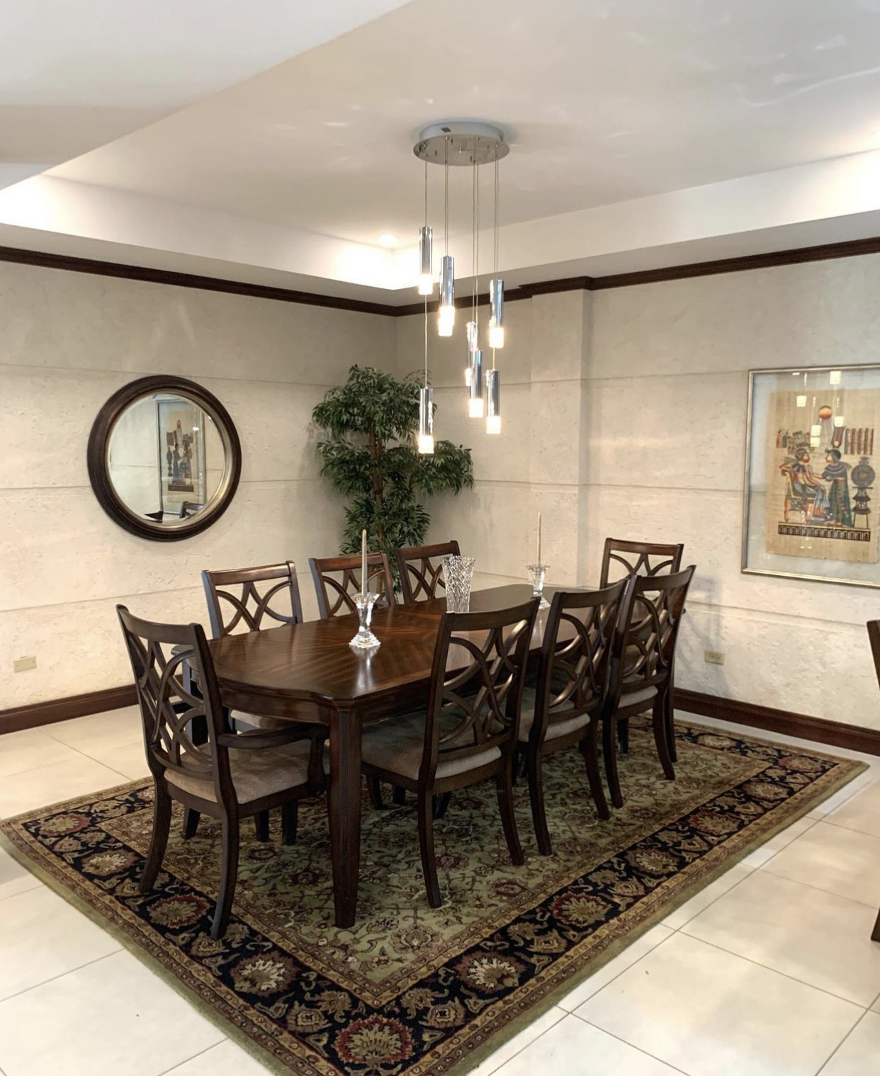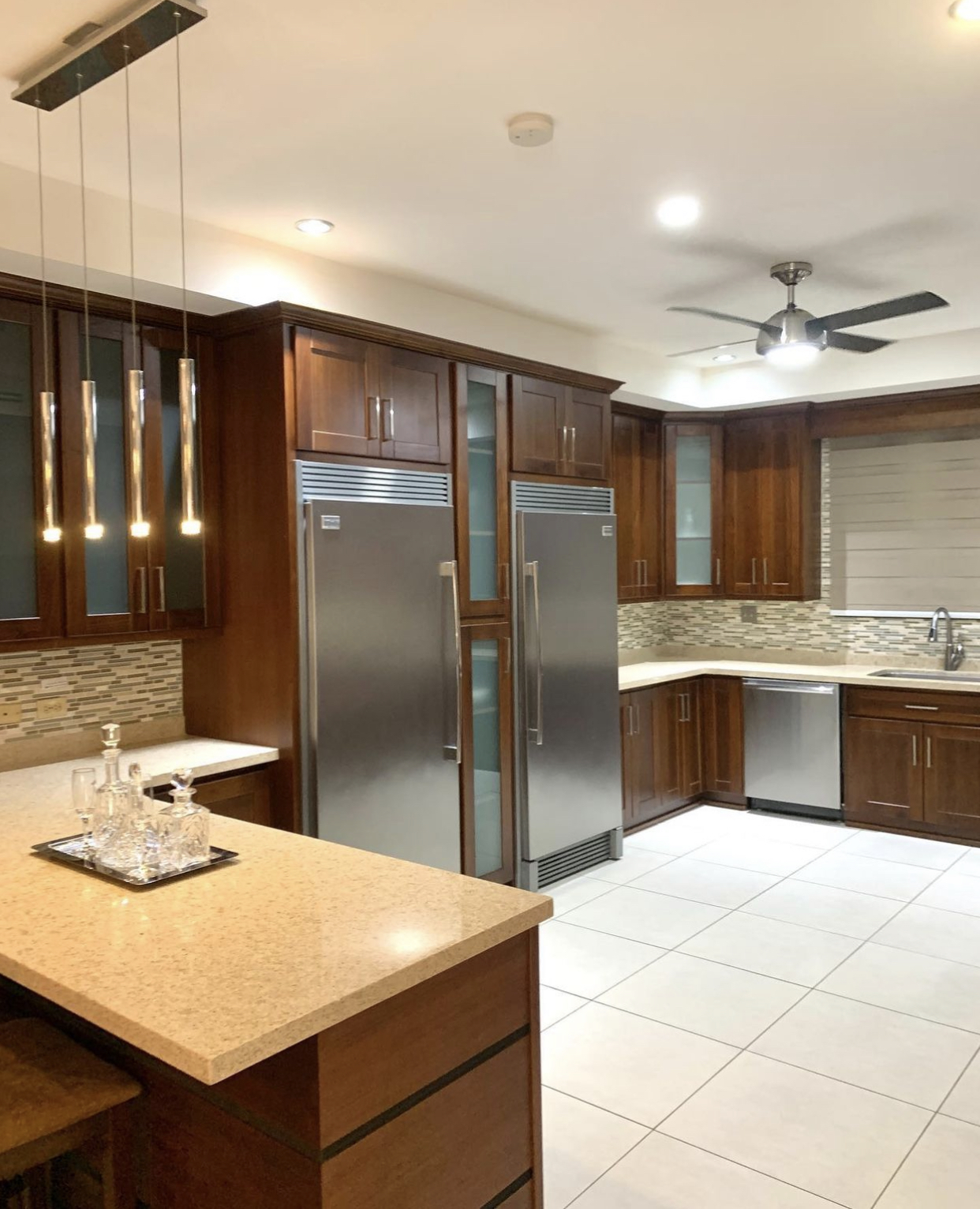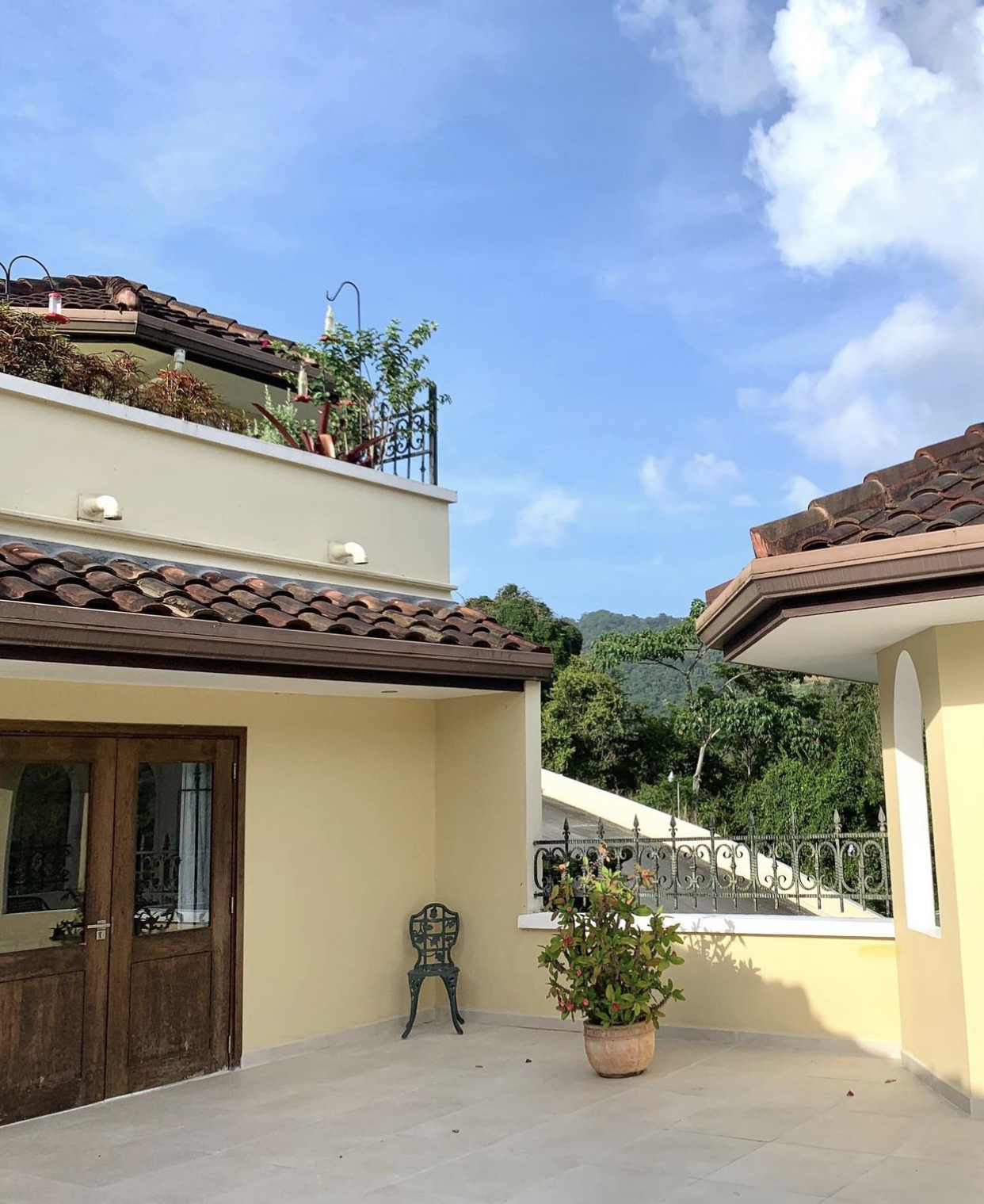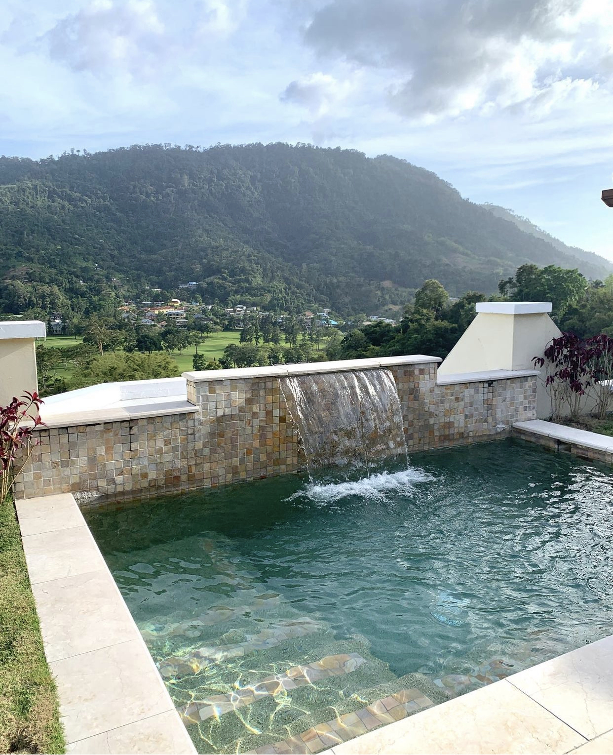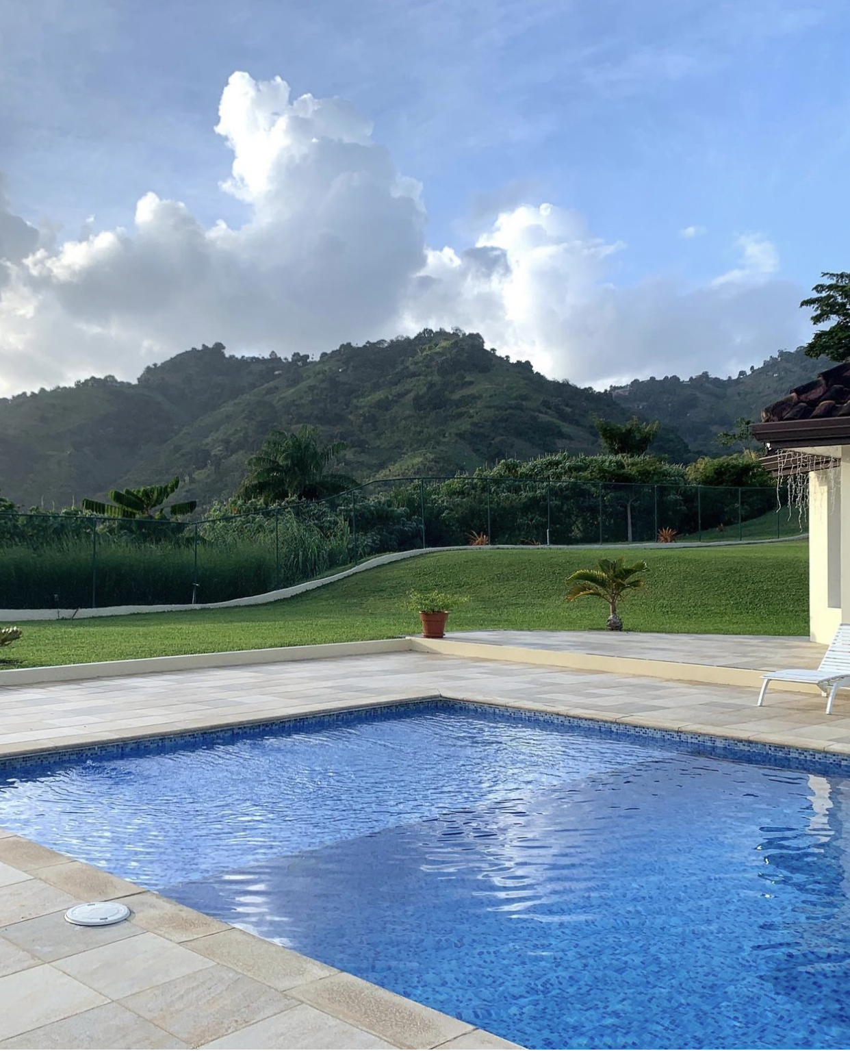 5200 sq ft. apartment nestles in the Moka hills with gorgeous views of the St. Andrew’s golf course and the northern range. 3 bedrooms (all en-suite with walk-in closets), 3.5 bathrooms. Beautifully furnished and fully equipped, top of the line stainless steel appliances, open plan kitchen, living and dining room plus an enclosed tv room. The living room and master bedroom open out onto a spacious balcony with a wet bar, plunge pool, bbq and garden. The compound has electric gate access, a shared pool and a gazebo, gym and beautifully landscaped gardens.
